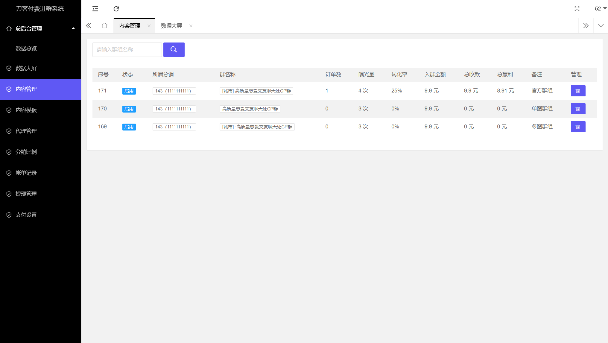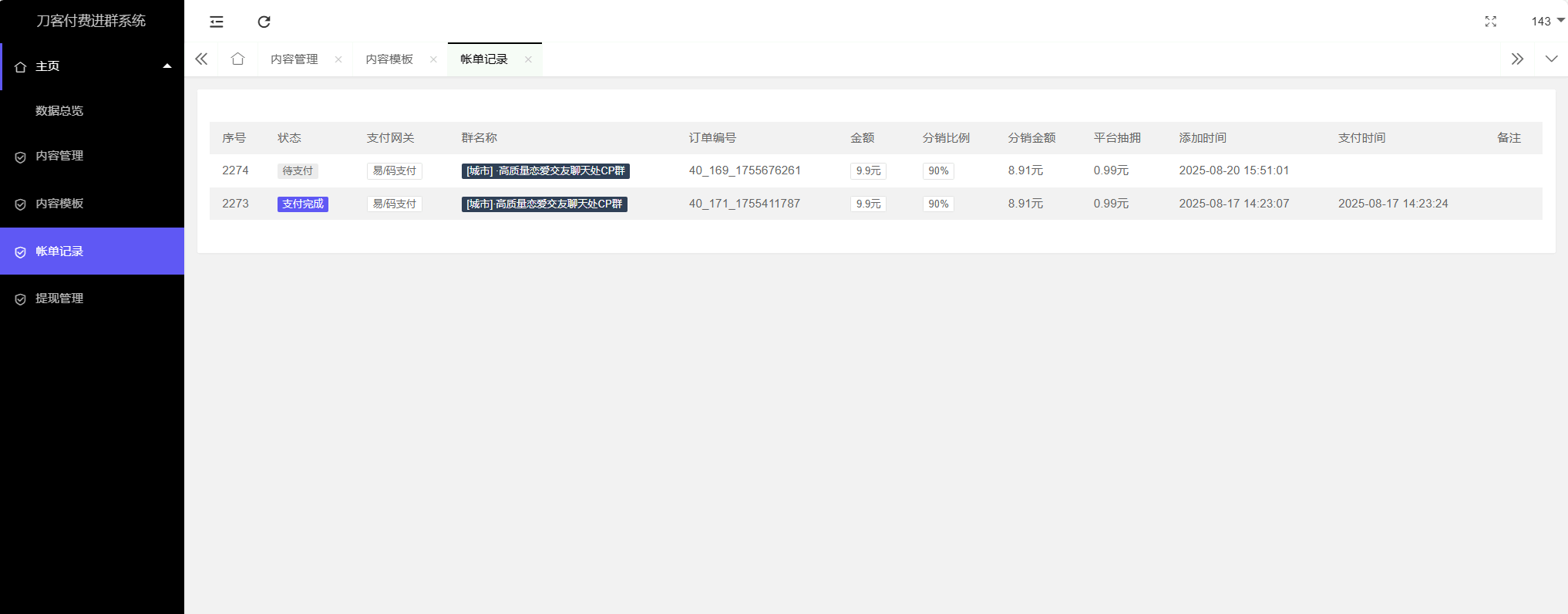 分站后台:
