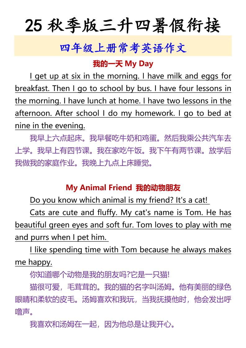 【2025秋新版】四年级上册常考英语作文-云科数创