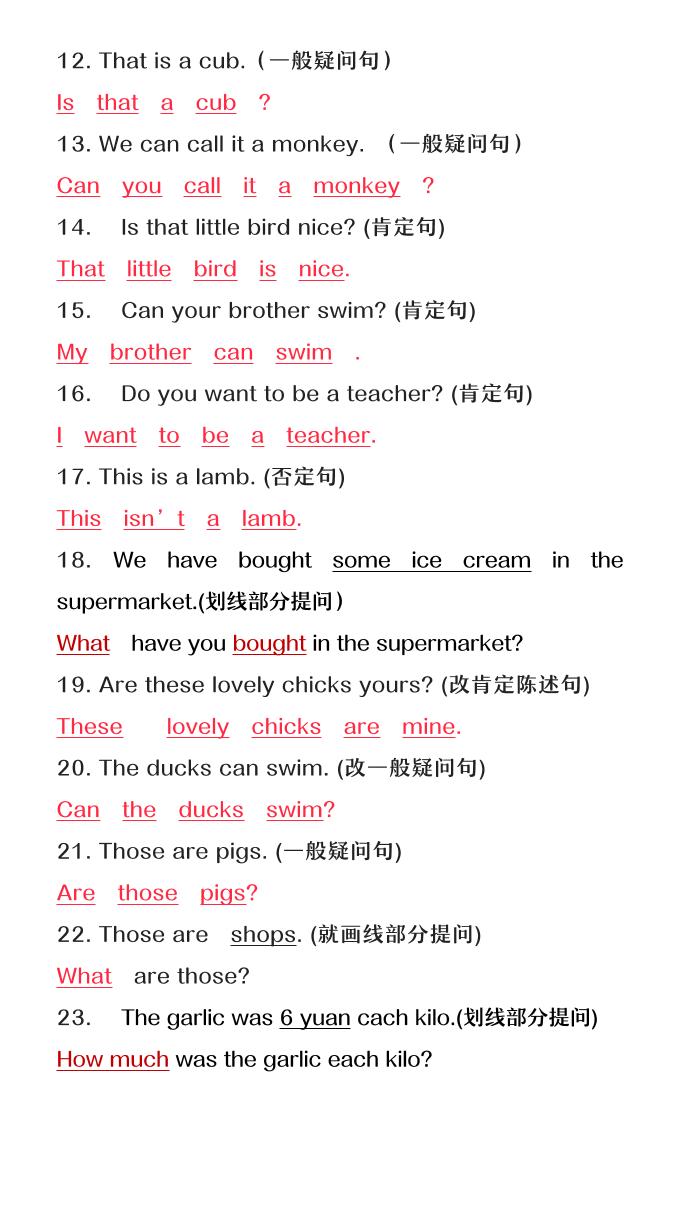 【2025秋新版】六年级上册英语必考句型转换