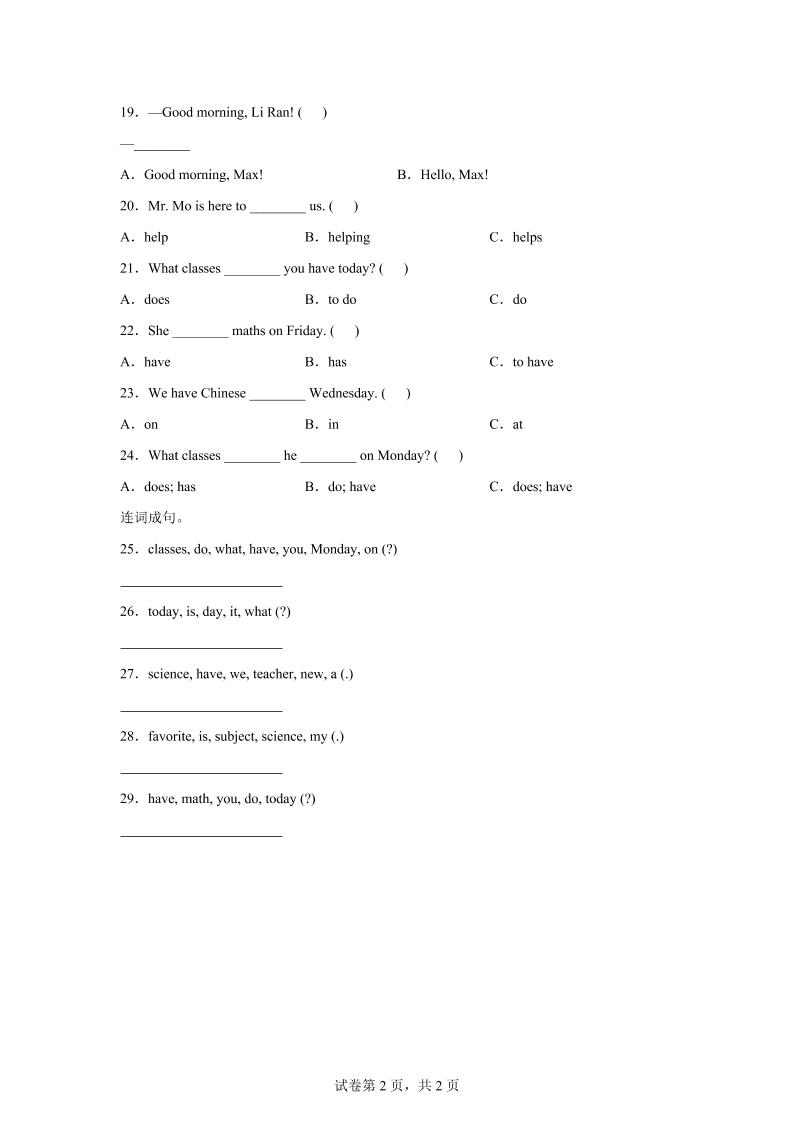 2025-2026学年北师大版(2024)英语四年级上册Unit1BacktoschoolLesson2基础练习(同步练)-云科数创