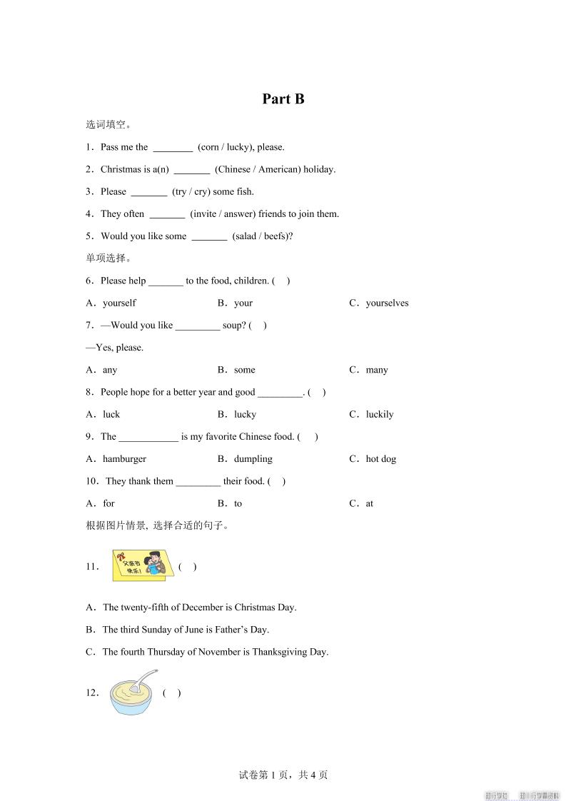 闽教版英语六年级上册Unit7PartB练习卷-云科数创