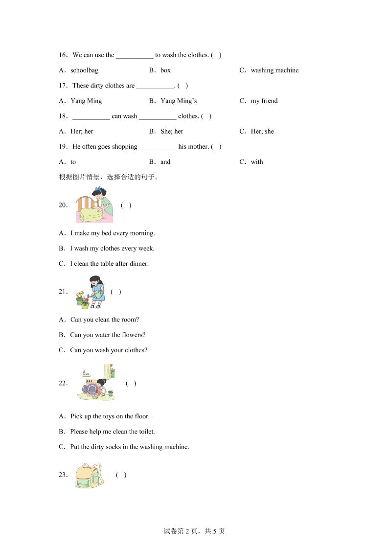 闽教版英语六年级上册Unit5PartB练习卷