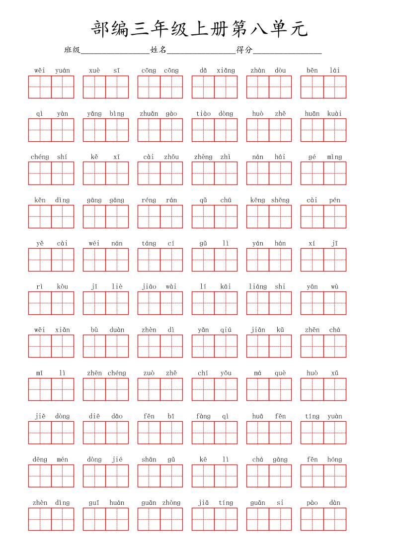 看拼音写词语三年级上册语文第八单元