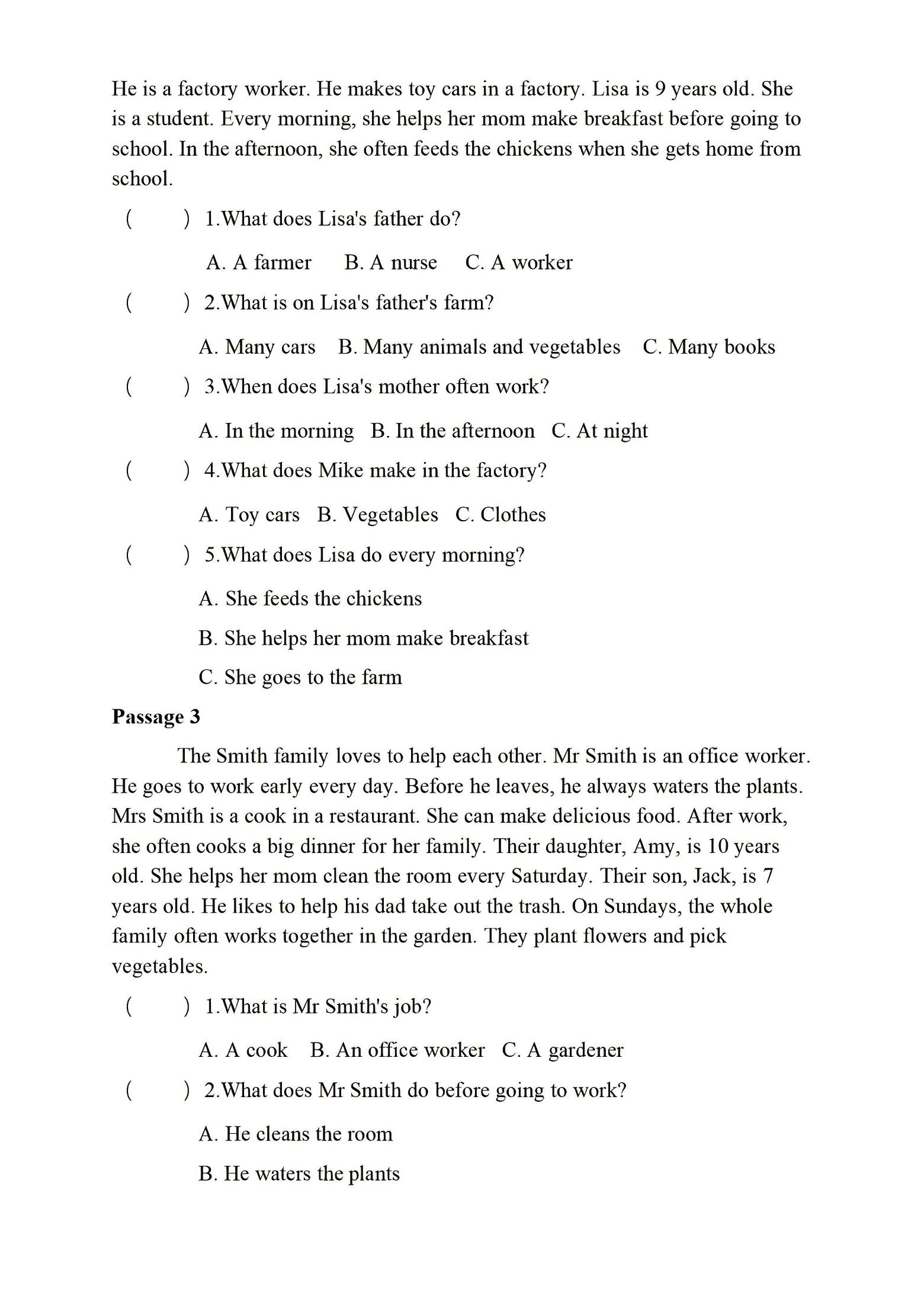四年级上英语阅读理解重难点专项练习《PEP版》