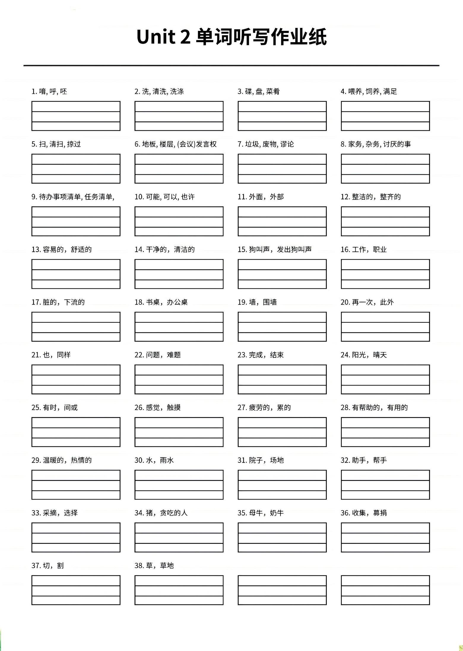 四年级上英语1-6单元单词听写作业纸《外研版》