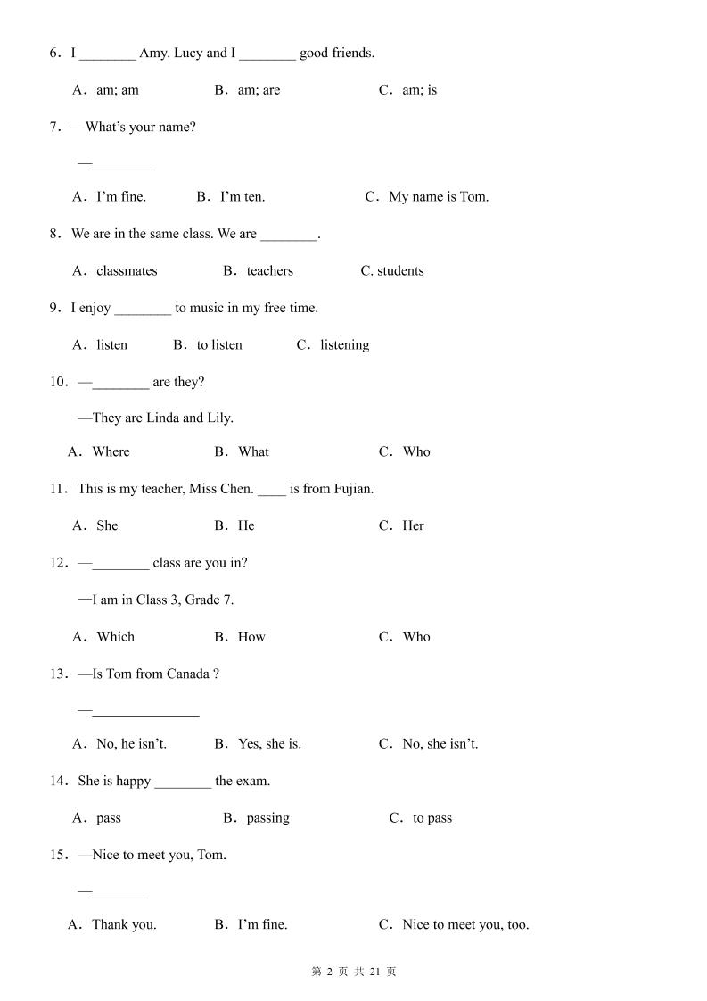七年级上英语第1次月考卷(仁爱版)