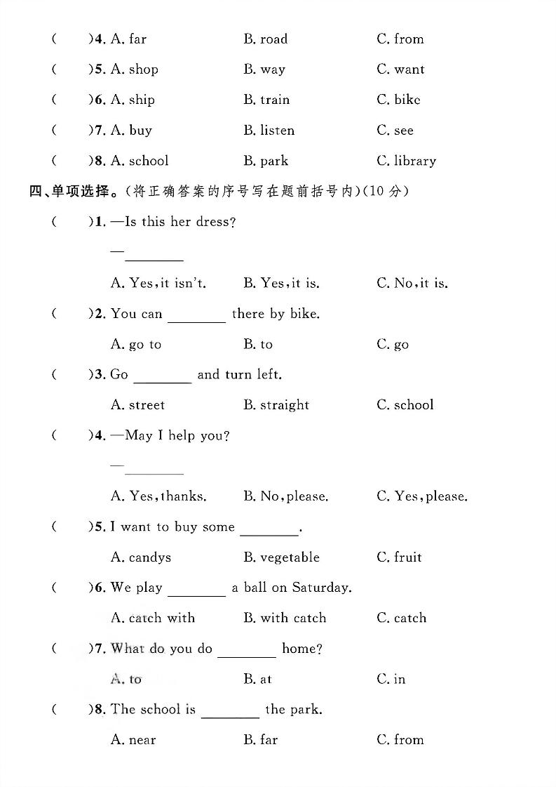 四年级上英语期末检测卷《冀教版》