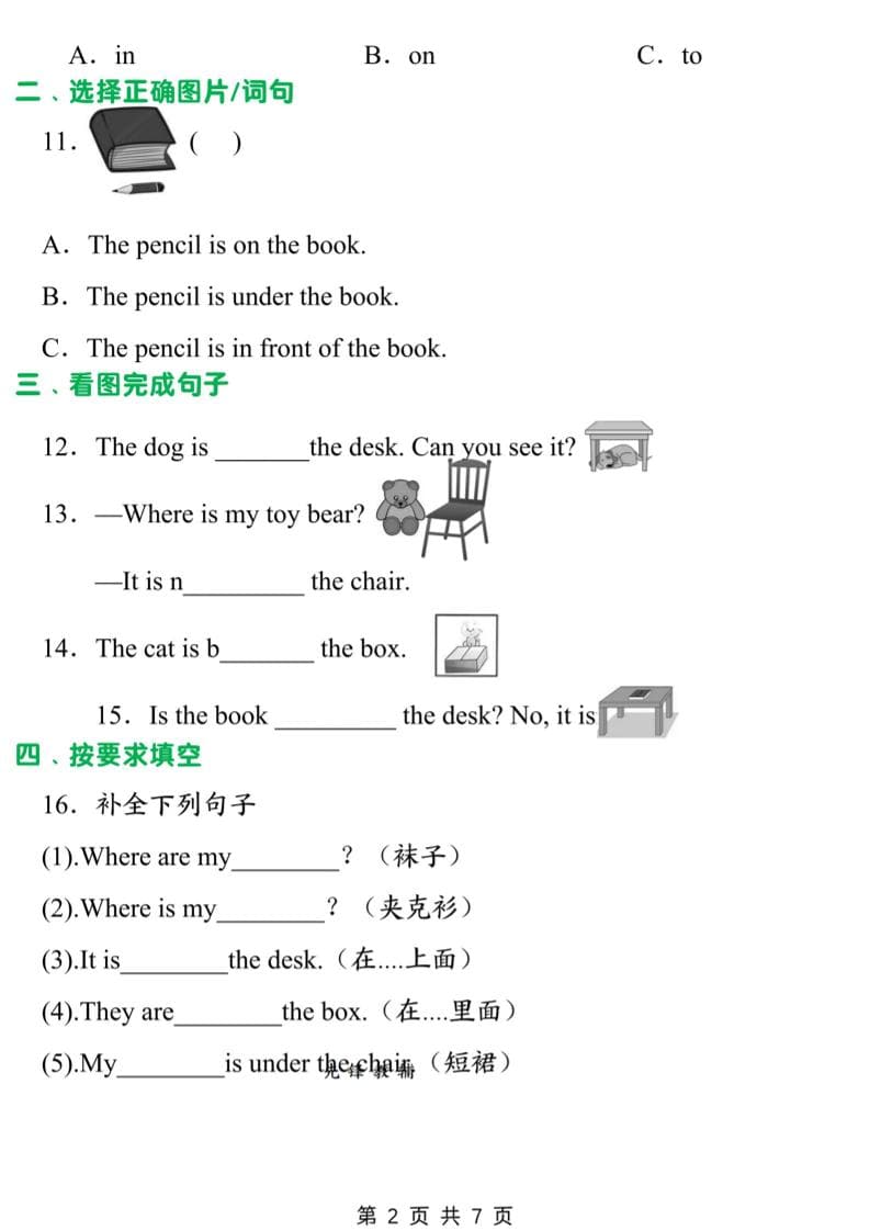 三年级下英语常考易错题