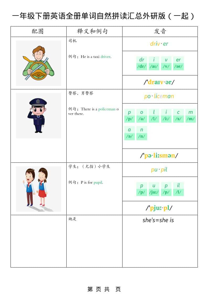 一年级下英语全册单词自然拼读汇总《外研版(一起)》-云科数创
