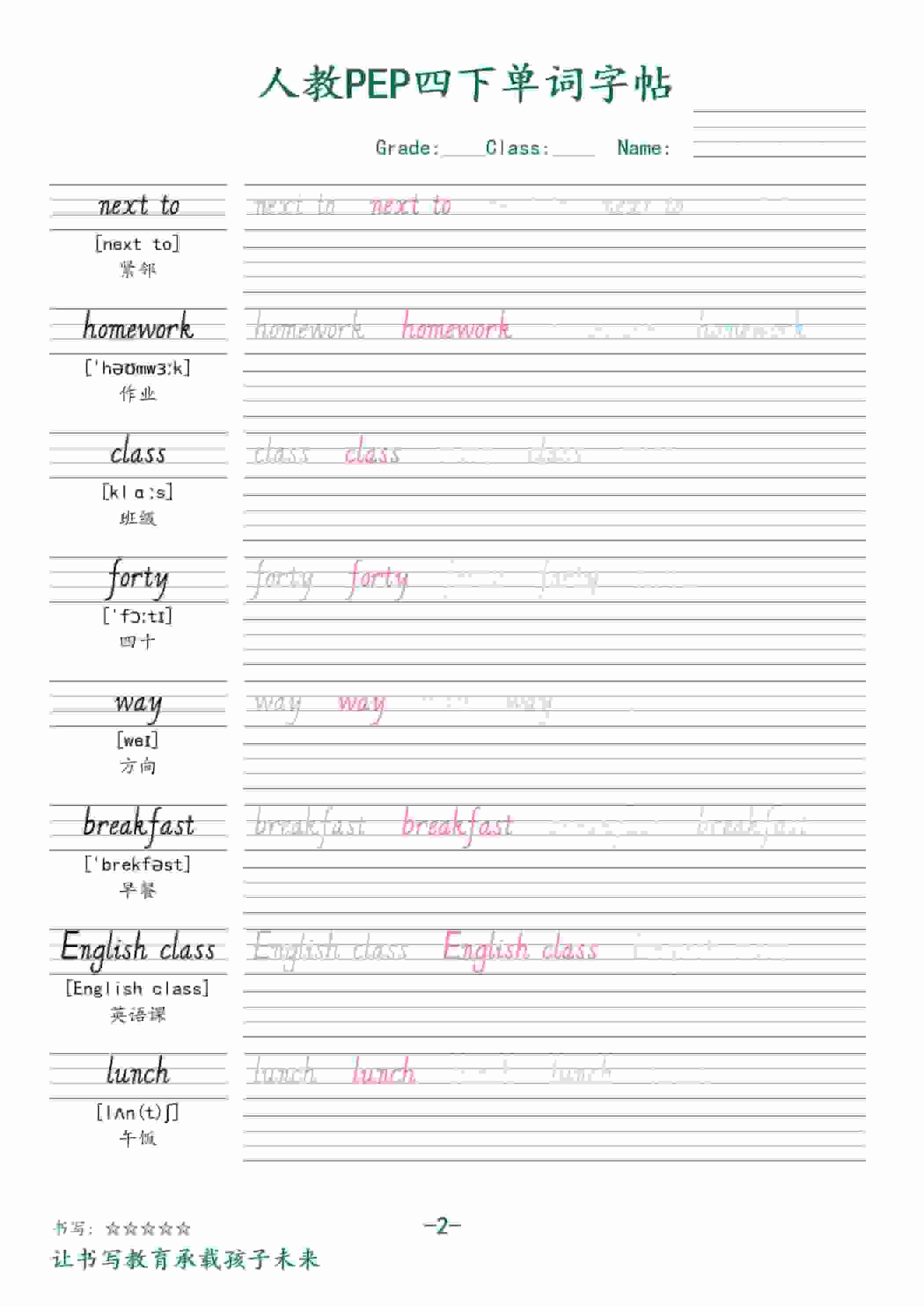 四年级下英语同步单词字帖《人教版PEP》-云科数创