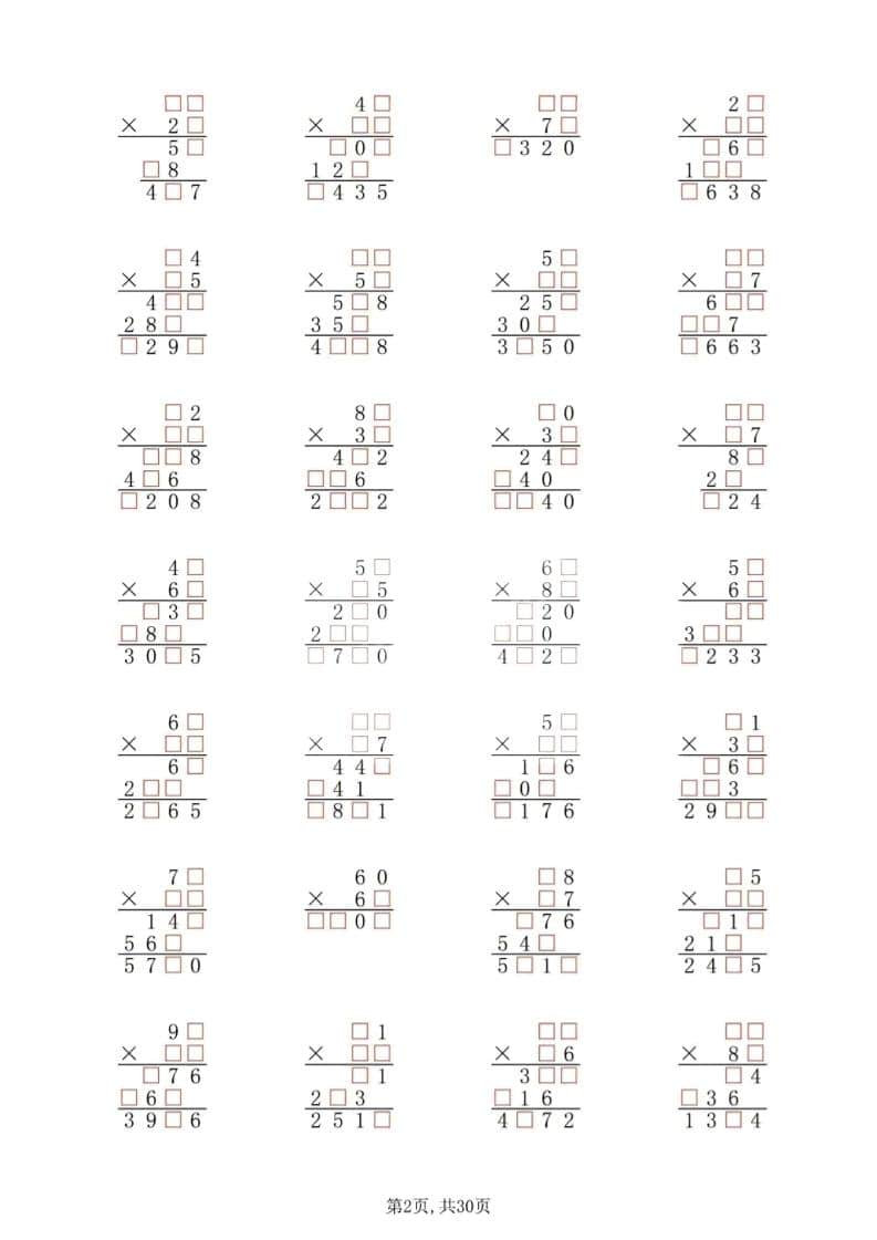 三年级下数学两位数乘两位数专项练习